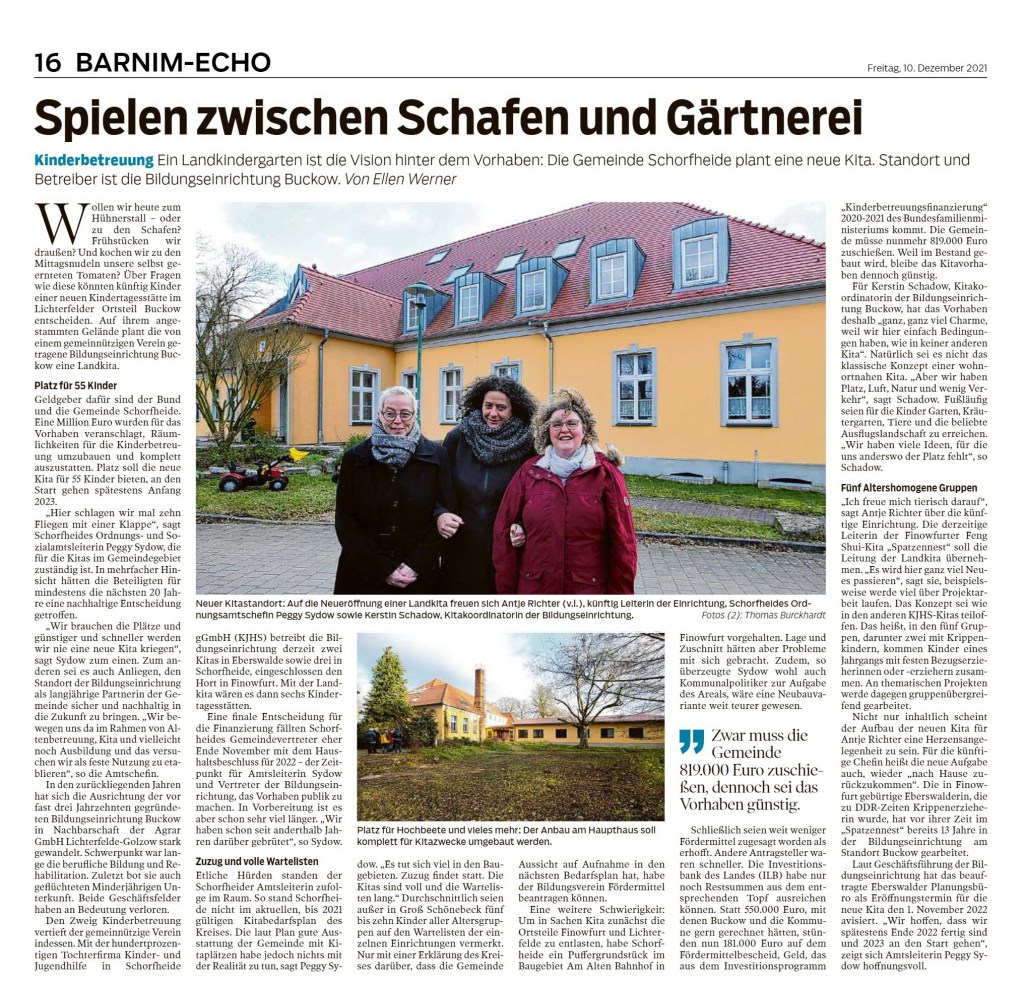 Seite 16: In Buckow bei Lichterfelde soll ein Landkindergarten in Betrieb gehen – spätestens Anfang 2023