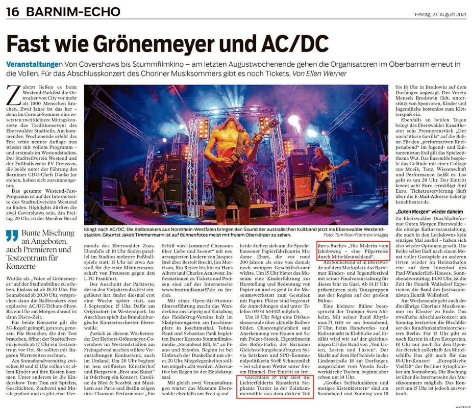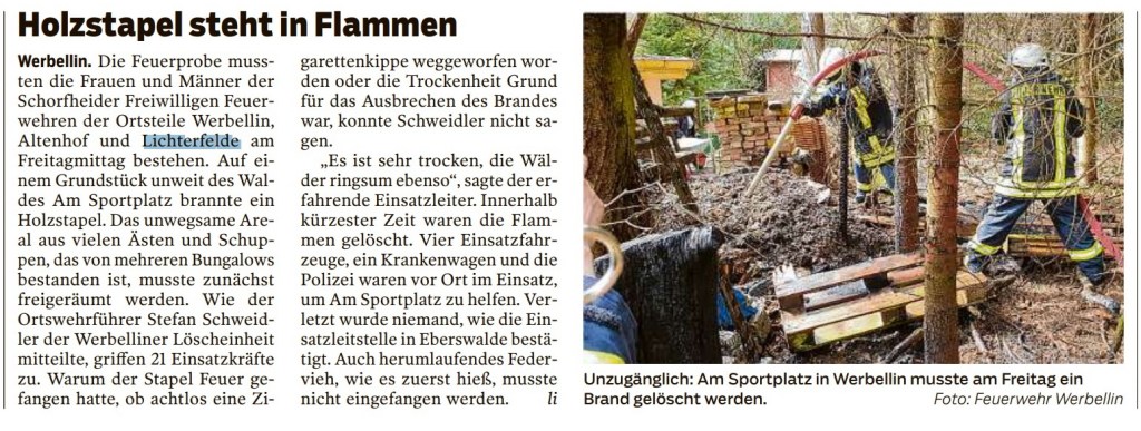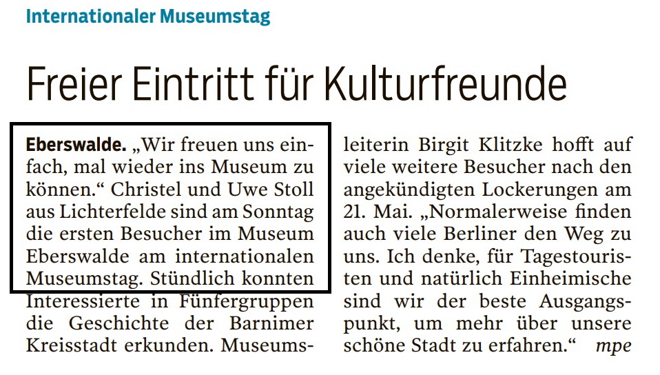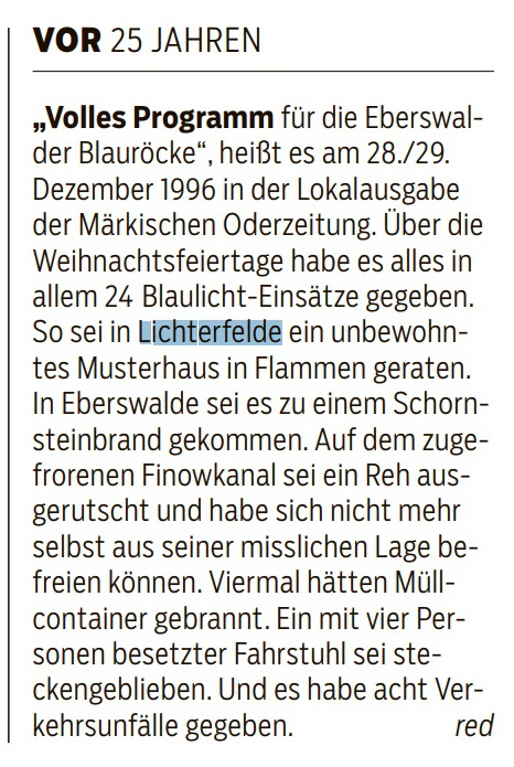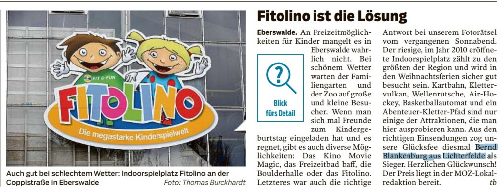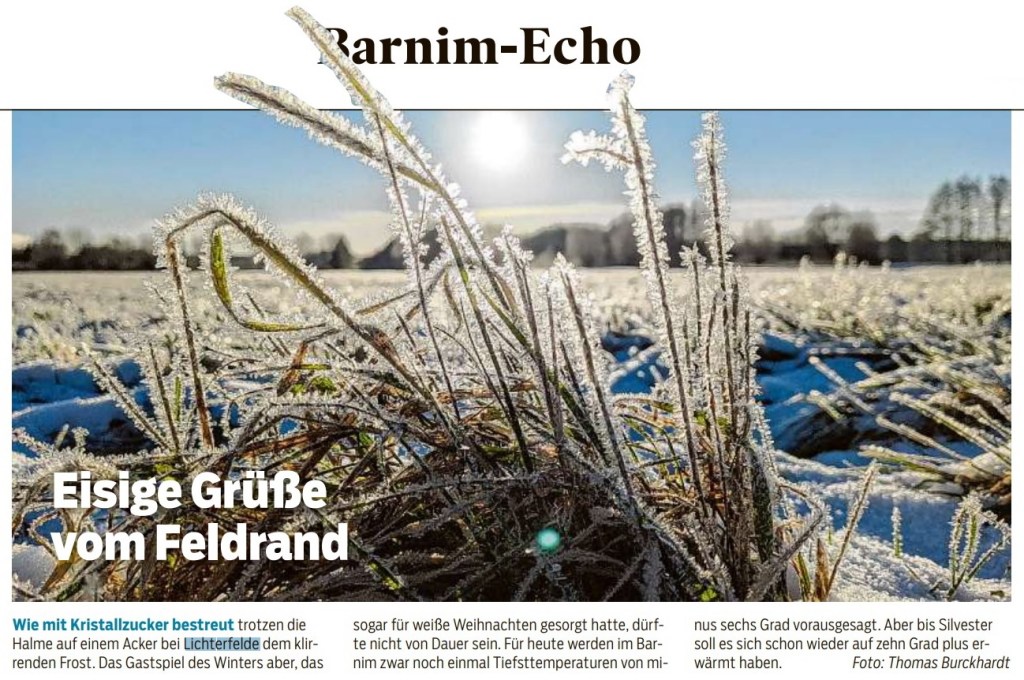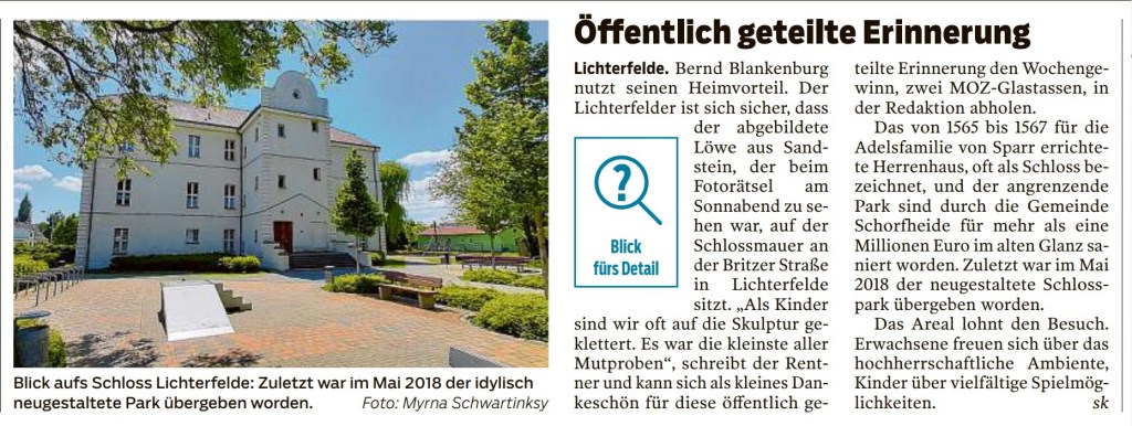 Mit freundlicher Genehmigung der Märkischen Oderzeitung auch für alle folgenden Beiträge aus den Tageszeitungen