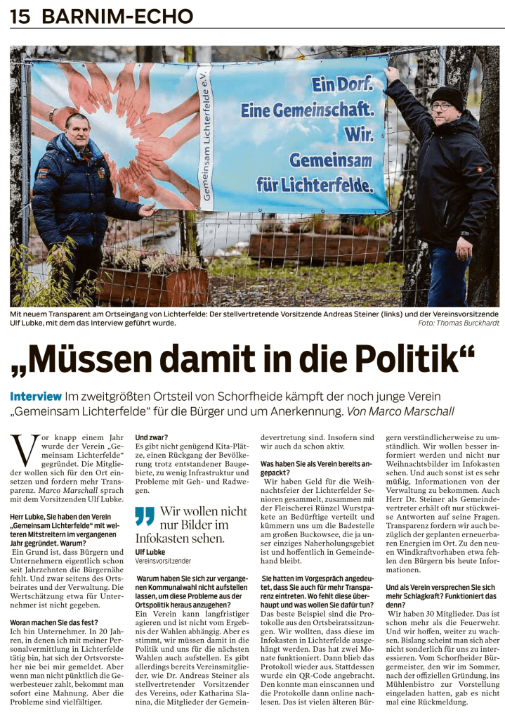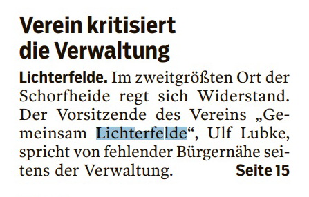 fehlende Bürgernähe der Verwaltung, Verein „Gemeinsam Lichterfelde“