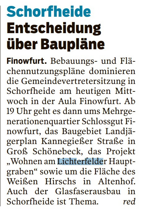 Entscheidung über Baupläne „Wohnen am Lichterfelder Hauptgraben“