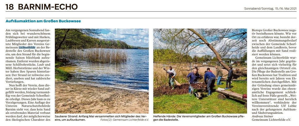 S.20 BARNIM-ECHO Sonnabend/Sonntag, 8./9. Mai 2021