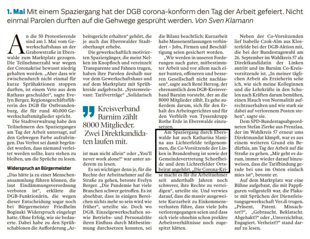 ▓ Gewerkschaftsprotest mit Hindernissen in Eberswalde