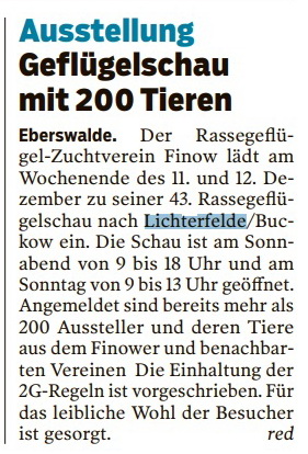 Finowfurt, ……. Der genaue Verlauf der festgelegten Restriktionsgebiete ist der als Anlage 1 ???beigefügten Karte zu ersehen; In den benachbarten Gebieten der Sperrzone II ist zu verfahren nach Punkt 18 – Jede Person ist verpflichtet dafür zu sorgen, dass ihrer Aufsicht unterstehende Hunde, im beschriebenen Gebiet nicht frei herumlaufen (Leinenzwang). Außerdem wird das Betreten des Waldes und der offenen Landschaft untersagt. Ausnahmen sind beim Veterinär- und Lebensmittelüberwachungsamt des Landkreises Barnim zu beantragen. Sonnabend/Sonntag, 7./8. August 2021 S.20