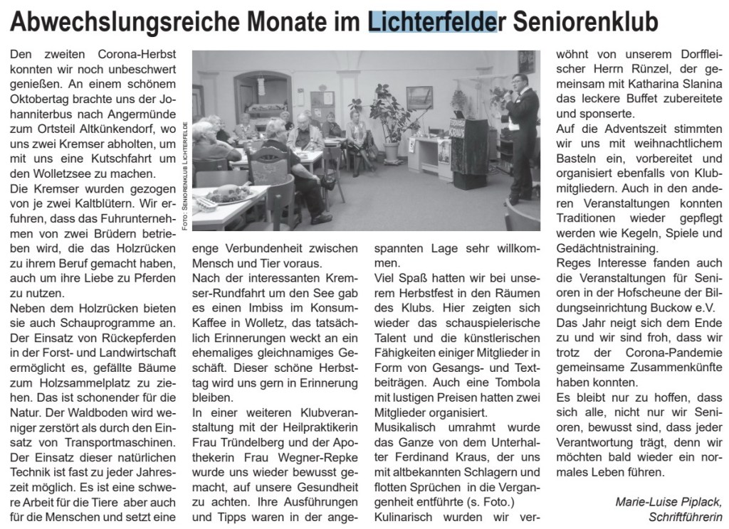 Lunow: Karla Ollech zum 61., Trampe: Christiane Schmidt zum 70. Geburtstag Seite 13 Mittwoch, 11. August 2021