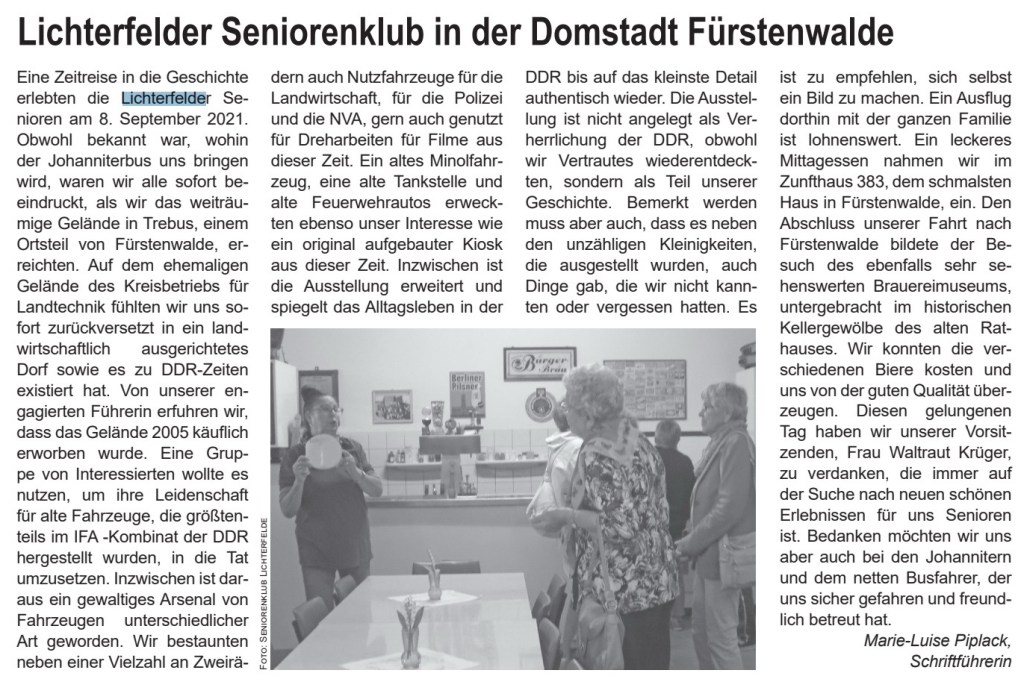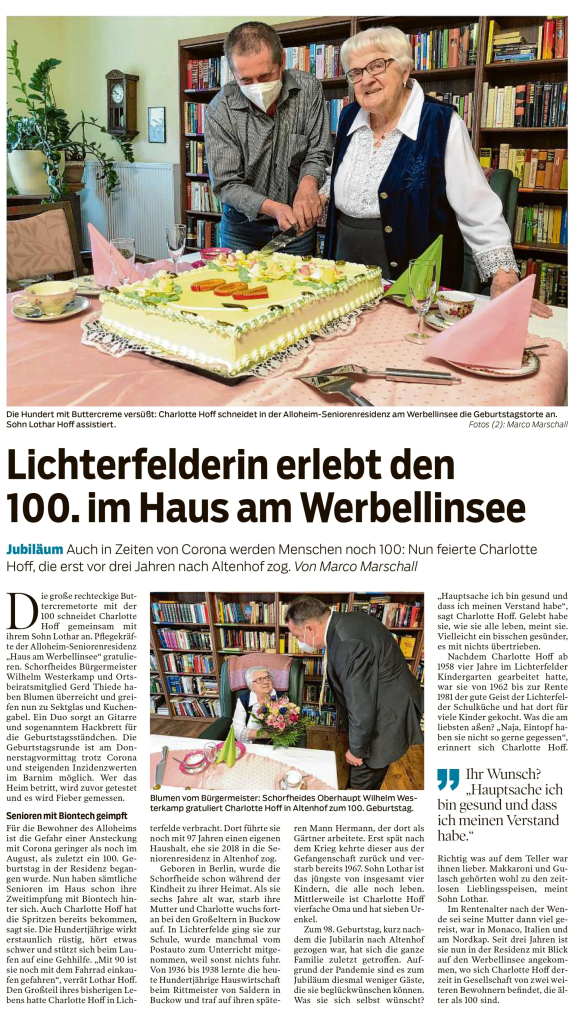 zum 80., Renate Hager zum 80., Britz: Hans Koppermann zum 90., Golzow: Renate Geucke zum 80., Lichterfelde: Günter Witthuhn zum 94., Melchow: Irene Jautzus zum 80. Geburtstag. Seite 13 Mittwoch, 8. September 2021