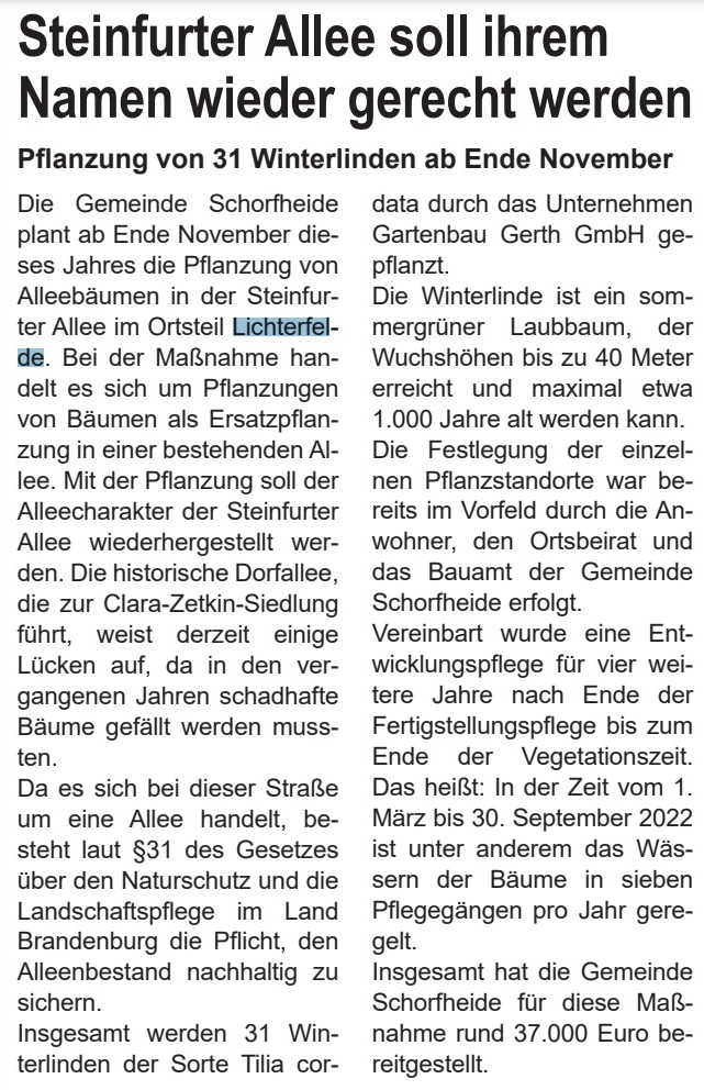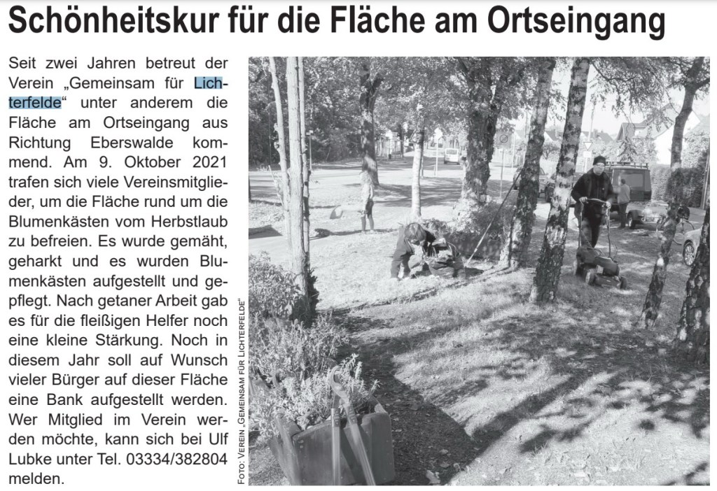 ▓ Blumenkästen neu bepflanzt. Blühend erstrahlen die Blumenkästen am Ortseingang Lichterfelde. Diese wurden am Samstag vom Verein „Gemeinsam für Lichterfelde“ neu bepflanzt, der bereits seit zwei Jahren zur Verschönerung des „Stadtbildes“ beiträgt. S.17 Freitag, 12. November 2021