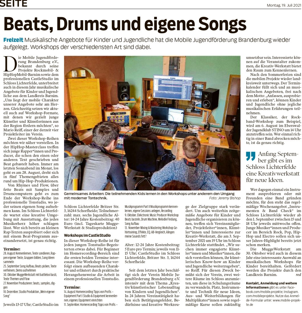 Mugge machen im Schloss Lichterfelde – mehr über das Rockmobil Barnim auf der Jugendseite.