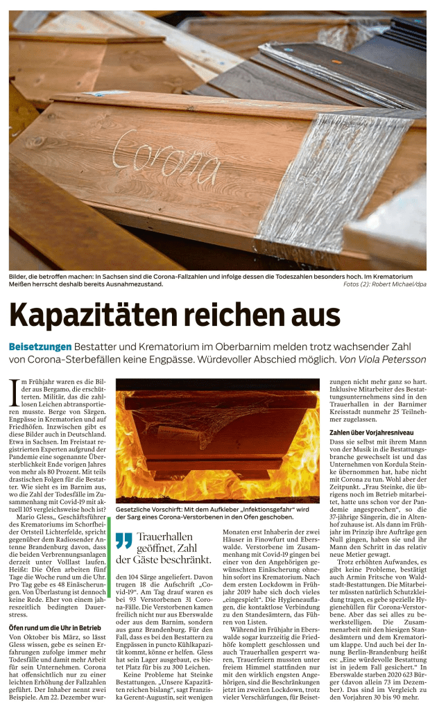 Die Krankenhäuser, Intensivstationen und die Krematorien waren in der Corona Zeit nie überlastet, 16.01.2021 S.13