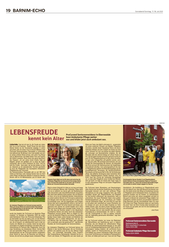 S.19 BARNIM-ECHO Sonnabend/Sonntag, 10./11. April 2021
