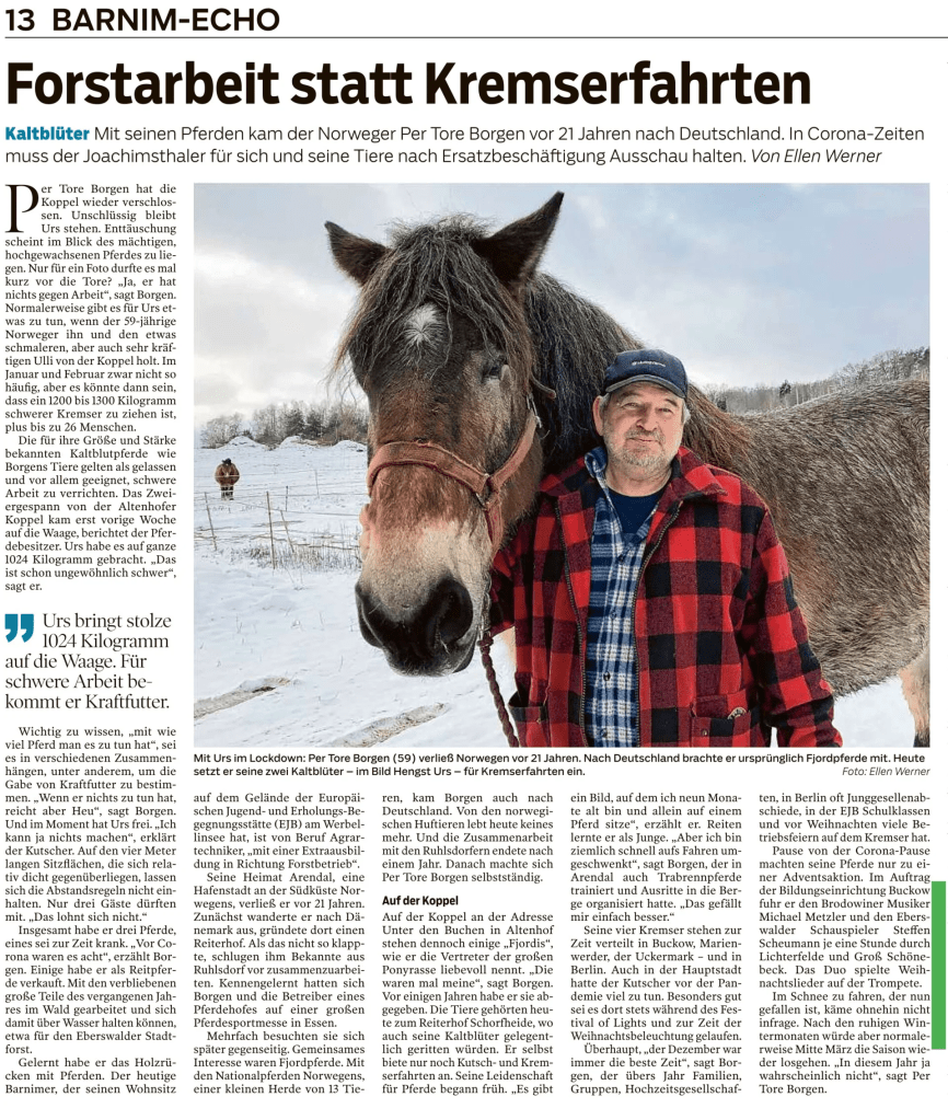 Schorfheide hervor. wer S.17 BARNIM-ECHO Mittwoch, 17. Februar 2021