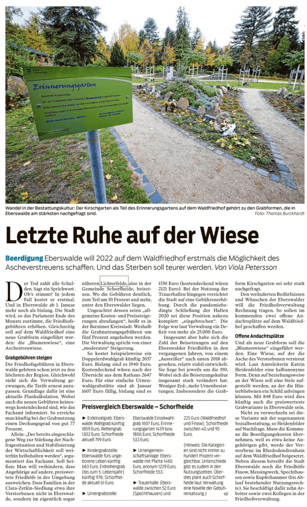 Letzte Ruhe auf der Wiese Seite 13 Freitag, 22. Oktober 2021