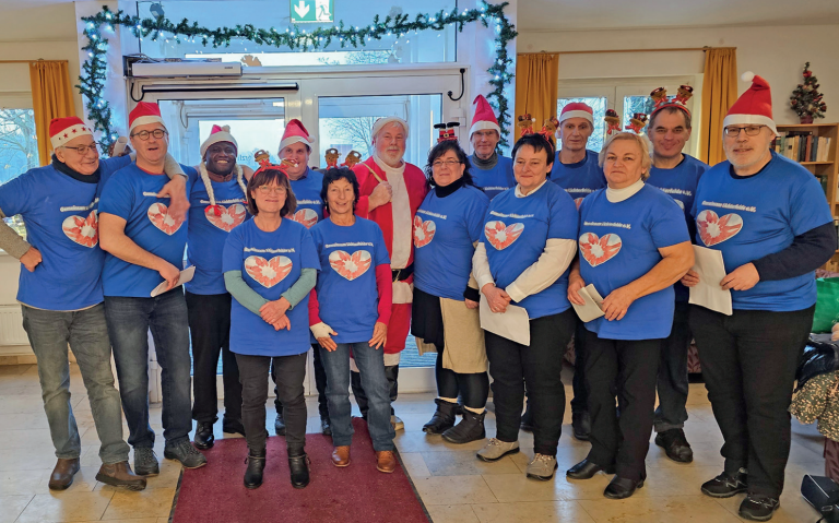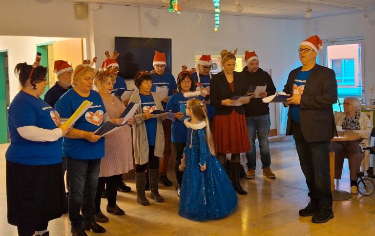 Trotz eines hohen Krankenstandes unter den Vereinsmitgliedern war der Saal gut gefüllt und die Gäste erwartete ein liebevoll gestaltetes Programm. Gemeinsam mit den Bewohnerinnen und Bewohnern wurde kräftig gesungen – bekannte Weihnachtslieder erfüllten den Raum und sorgten für festliche Stimmung.